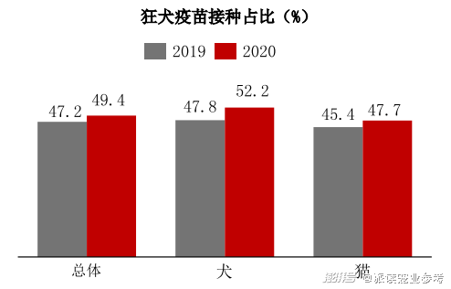 2020年,我国兽用狂犬疫苗的接种率约49.4%,较2019年上升2.2%。按照发达国家已大范围接种兽用狂犬病疫苗消除狂犬病的成功经验,我国兽用狂犬病疫苗的渗透率仍有进一步提升的空间。