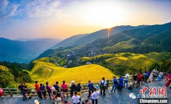 图为游客在桂林市龙胜各族自治县龙脊梯田观光游览。潘志祥 摄