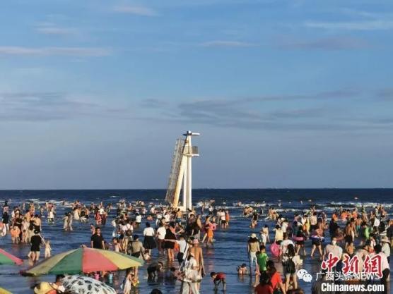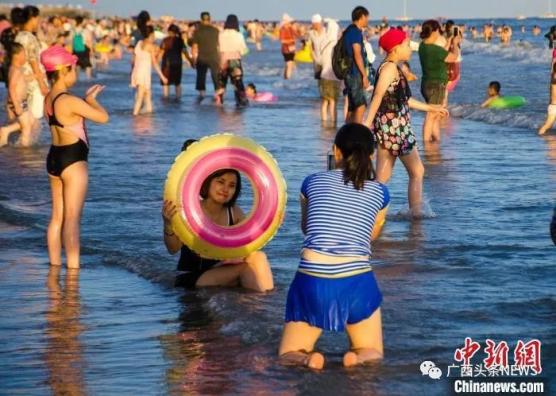 防城港白浪滩景区人头攒动。林洁琪 摄玉林