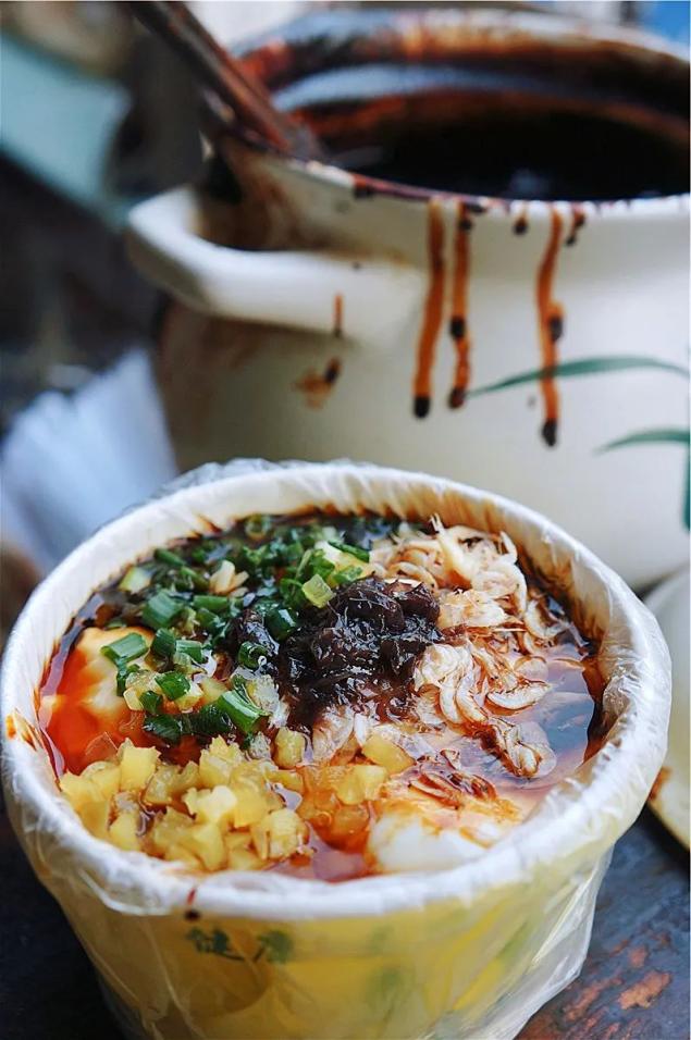 老锡惠公园门口的老曹摊头这里装豆腐的桶还是木桶,保留了最质朴的味道,木桶被盖在厚厚的棉被下保温,从桶中舀出白白的豆腐花,水嫩水嫩的,带着升腾的热气。