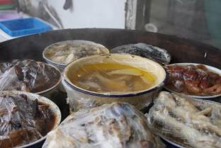 店门口最显眼的是几个垒得高高的蒸笼,里面都是一些嗲货,咸肉咸鱼之类早早便上架蒸好,看中什么让服务员取就行了,既方便又快捷。