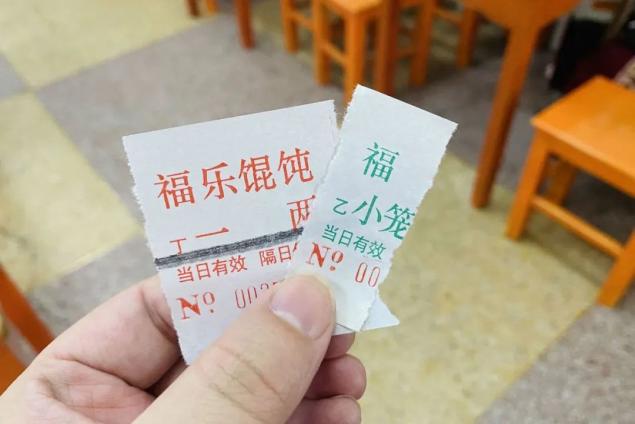 点单后拿到撕下来的小票,感觉时光在这里是静止的,依稀还是儿时的模样。自己端小笼,自己端馄饨,葱多辣少得记得提醒厨房阿姨。