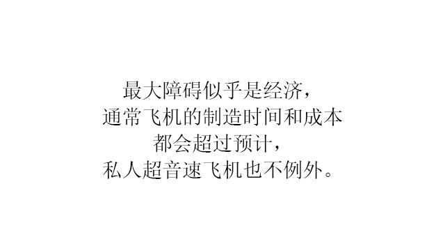 最大障碍似乎是经济,通常飞机的制造时间和成本都会超过预计,私人超音速飞机也不例外。美国宇航局有政府支持,分享大部分研究成果。虽然不与任何特定航空公司或制造商合作,但所有航空公司都能从中受益。如果没有政府的资助,湾流和Boom他们就步履维艰。Aerion Supersonic是前车之鉴。这家公司由资深航空业人士组成,亿万富翁罗伯特•巴斯(Robert Bass)出资,与波音(Boeing)合作,号称获得了112亿美元的订单。今年5月由于筹集不到足够资金维持运营,Aerion宣告倒闭,正由佛罗里达州法院进行清算。