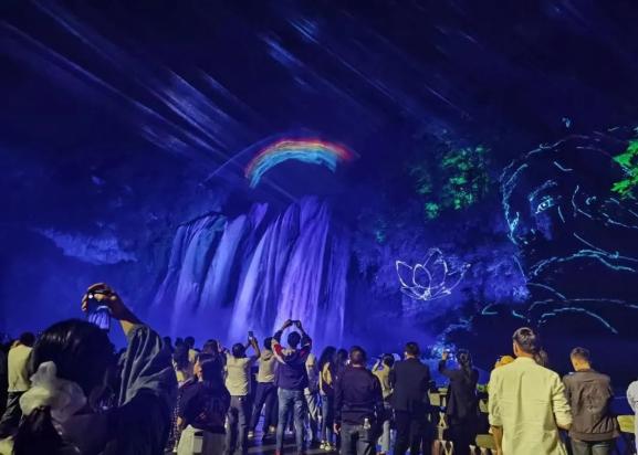 为进一步丰富旅游业态,提高游客过夜率,促进经济高质量发展,安顺市黄果树旅游区引进北京良辰光启公司投资1.7亿元打造黄果树夜游项目,该项目共分“入境”、“不夜国”和“一瀑九霄”三大主题区,含“入境千色锦绣”“幻境云端织梦”“寻境水影朝晖”等10余项光影体验互动和真人演艺表演,带给游客独具“黄果树风情”的贵州民族文化旅游体验。