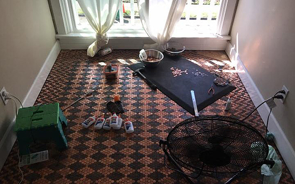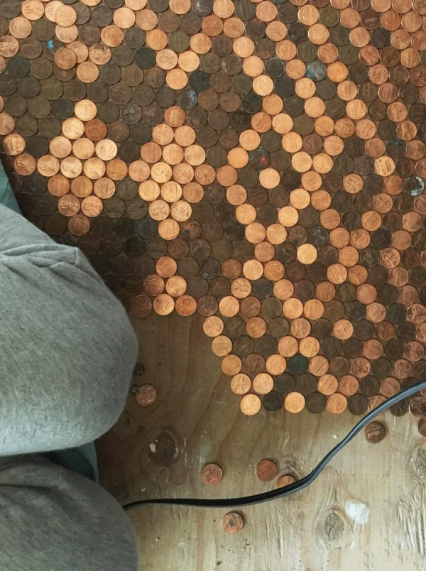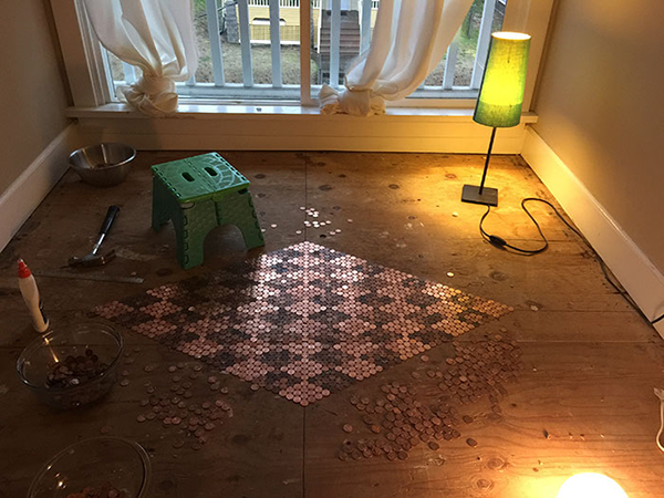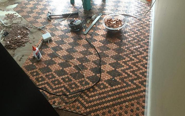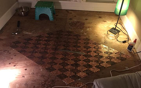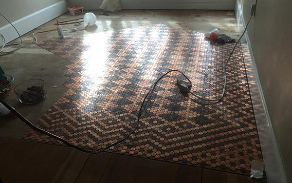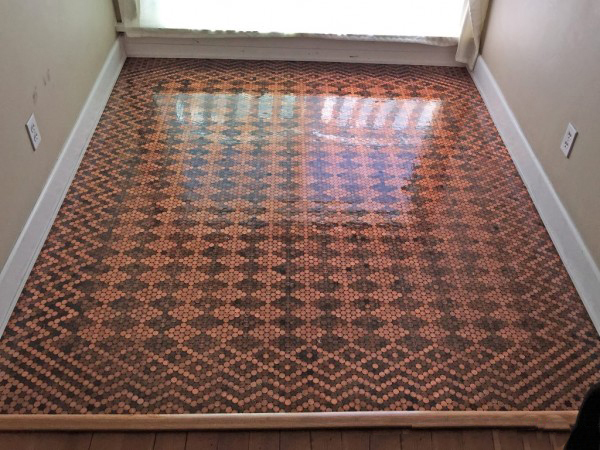 趣看|用13000枚硬币铺成地板,金属光泽呈现蜜汁闪亮