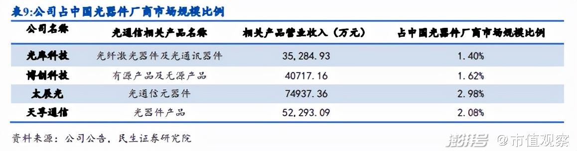 研究显示,2019年中国光器件厂商市场规模约36亿美元,天孚通信占中国光器件厂商市场规模的比例为2.08%,初步具备规模效应降低成本的基础,受益于5G网络发展带动,公司未来市占率有望进一步提升。