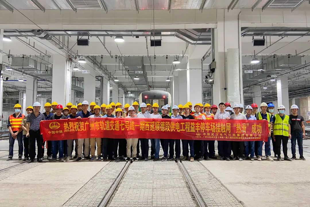 11月7日,试验电客车稳稳驶入益丰停车场9#道岔,标志着广州地铁7号线西延顺德段供电工程益丰停车场接触网热滑试验取得圆满成功。
