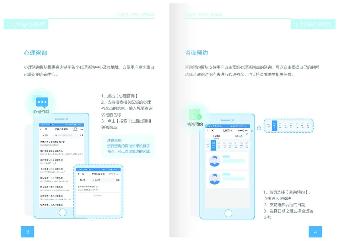 咨询预约模块支持用户自主预约心理咨询点的咨询,可以自主根据自己的时间选择合适的时间点去进行心理咨询,也支持查看医生相关信息。