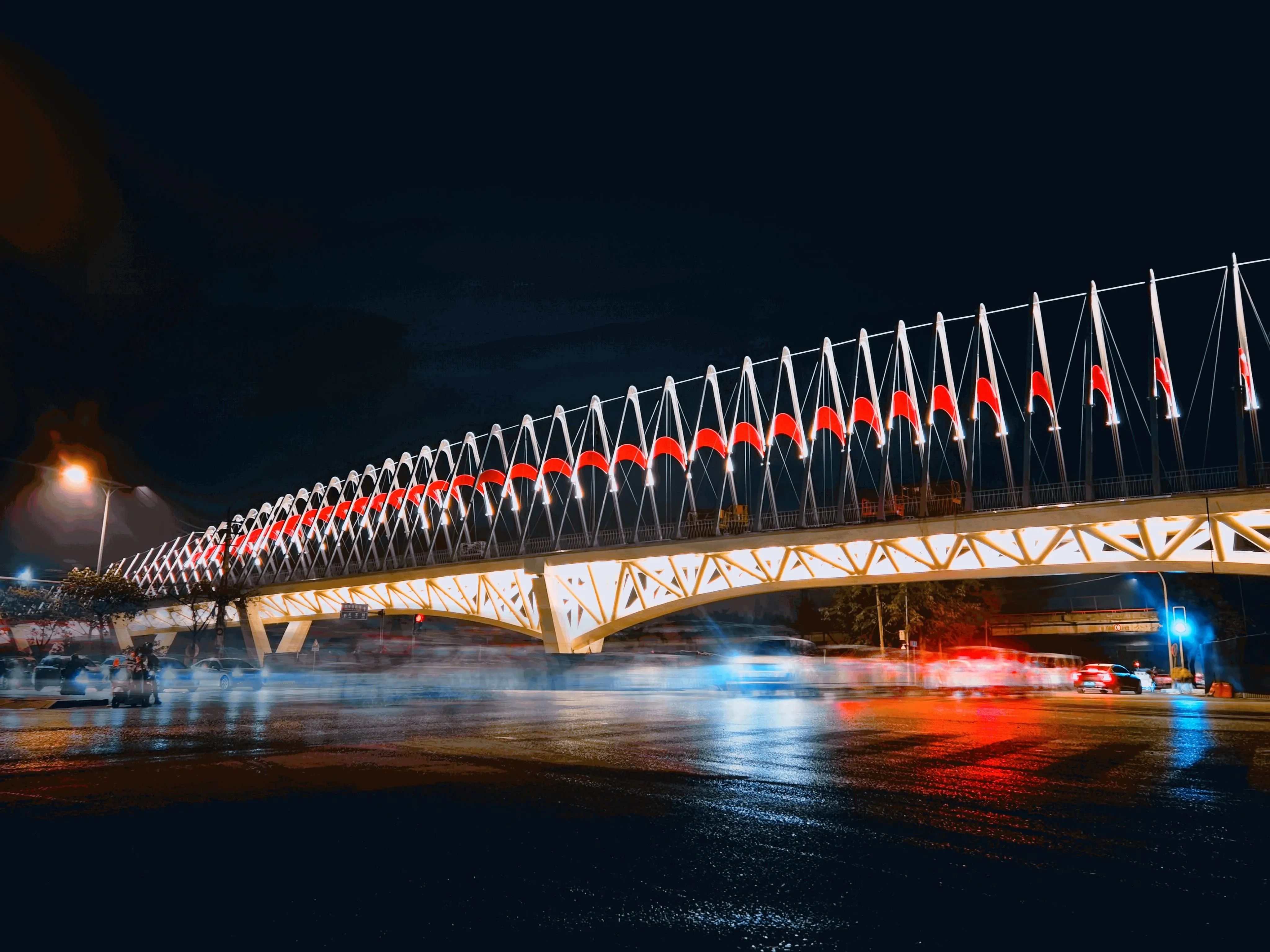 桥梁采用了异形桁架来实现菱形的轮廓曲线