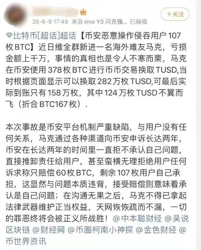《币安内外混乱,恐已是强弩之末》比特币教父