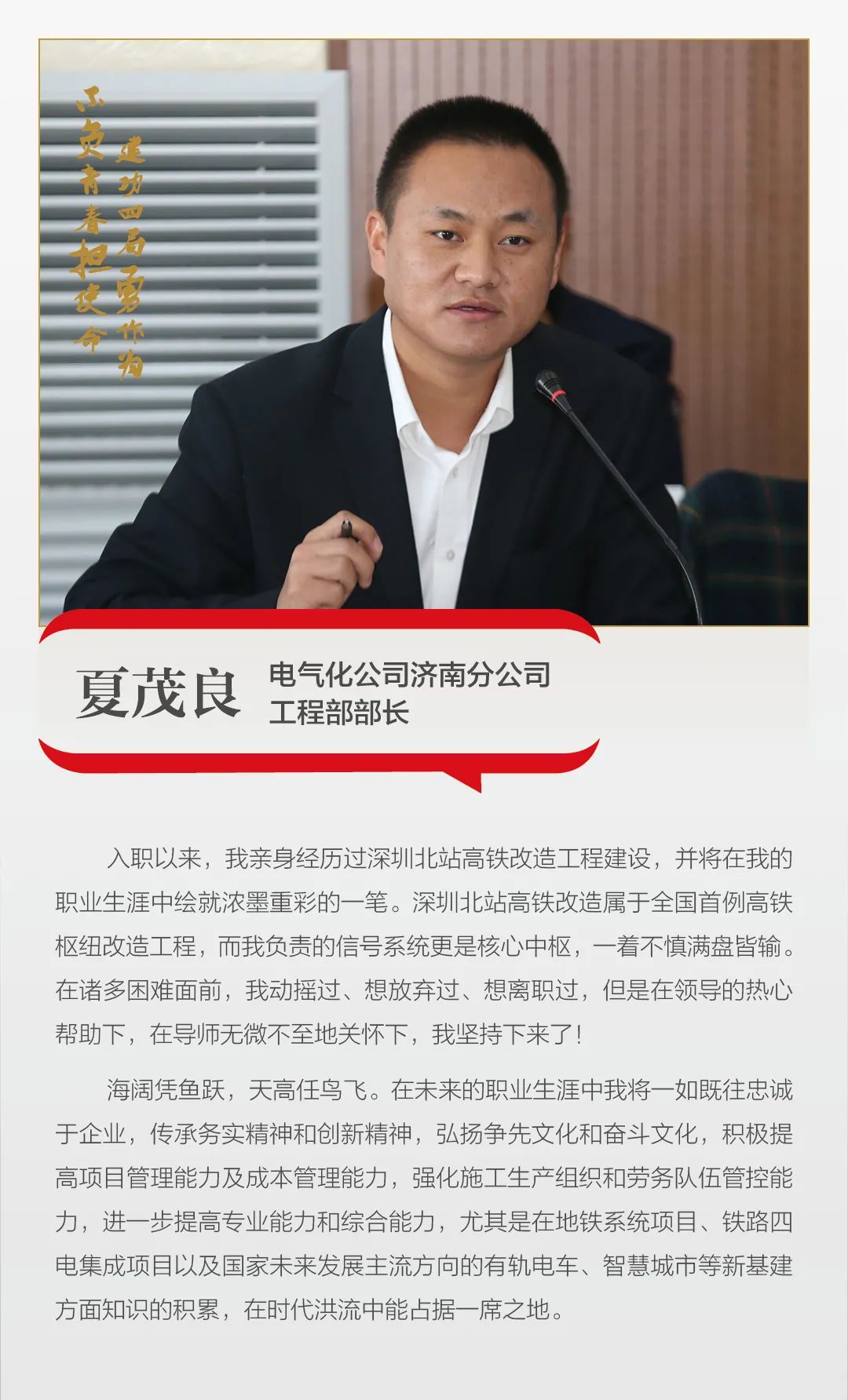 一公司邳州东站项目部工程部部长,助理工程师