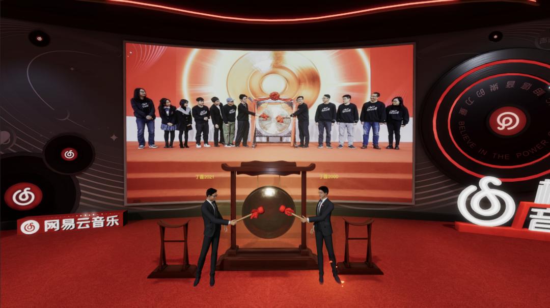 有意思的是,网易云音乐在杭州总部举行小规模线下仪式,并同步在网易伏羲沉浸式活动系统“瑶台”举办线上敲锣仪式,邀请三位“丁磊”跨越21年的时间线,实现线上线下同敲锣。据悉,这也是全球首个“元宇宙”上市仪式。