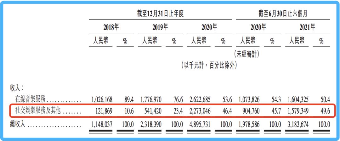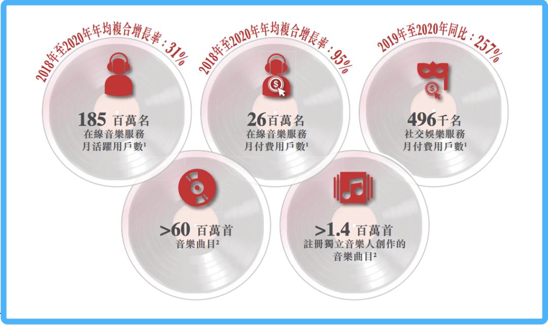 截至2021年上半年,平台在线音乐服务付费用户达到2600万人,较去年同期翻了一倍,过去三年(2018年-2020年)年均复合增长率高达95%。