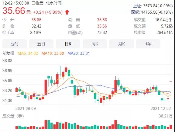 或受上述消息影响,12月2日,顺鑫农业开盘即涨停,收报35.66元,涨幅为9.99%,总市值超过260亿元。