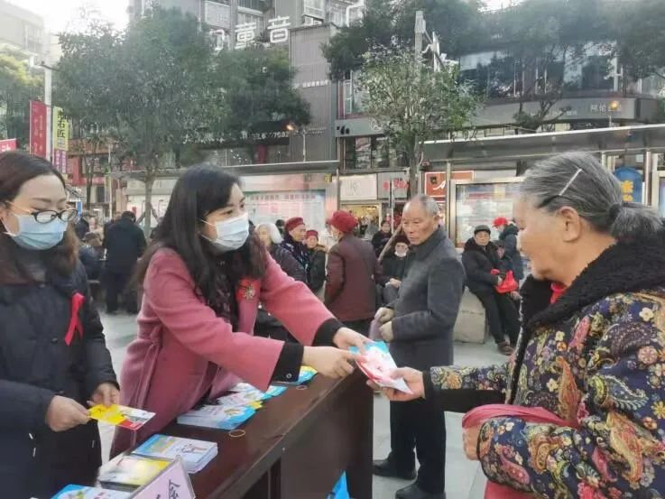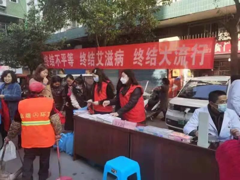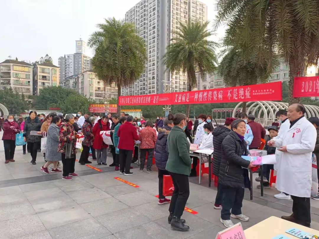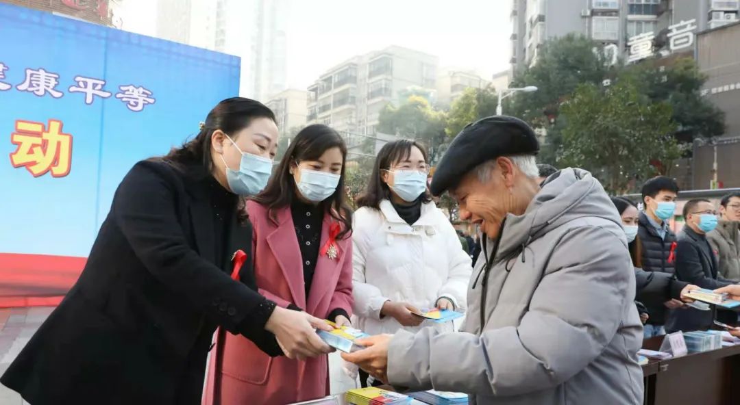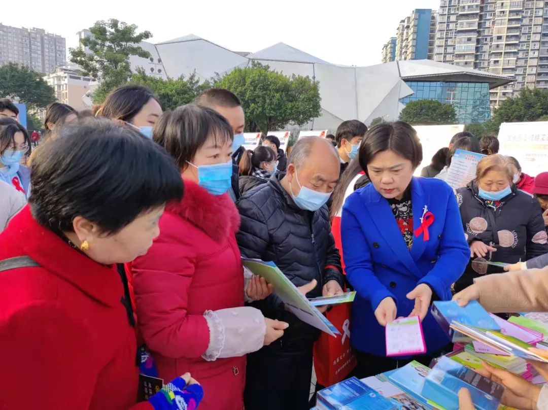 渠县妇联在万兴广场开展以“生命至上 终结艾滋 健康平等”为主题的宣传教育活动,为群众分发宣传资料,讲解艾滋病防治知识。AIDS DAY