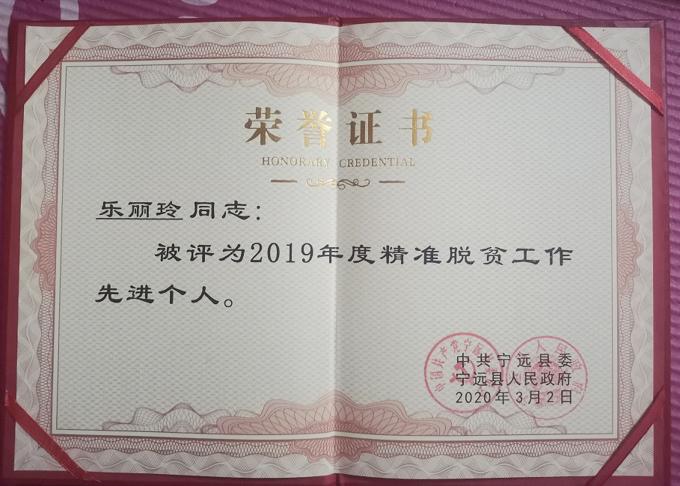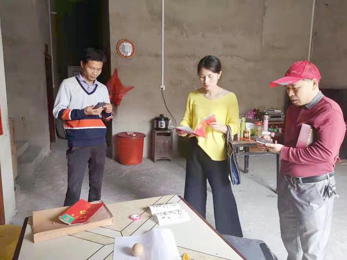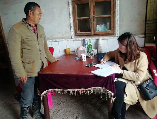 ▲宁远县2019年“精准脱贫工作先进个人”杨佳在村民家走访登记相关情况