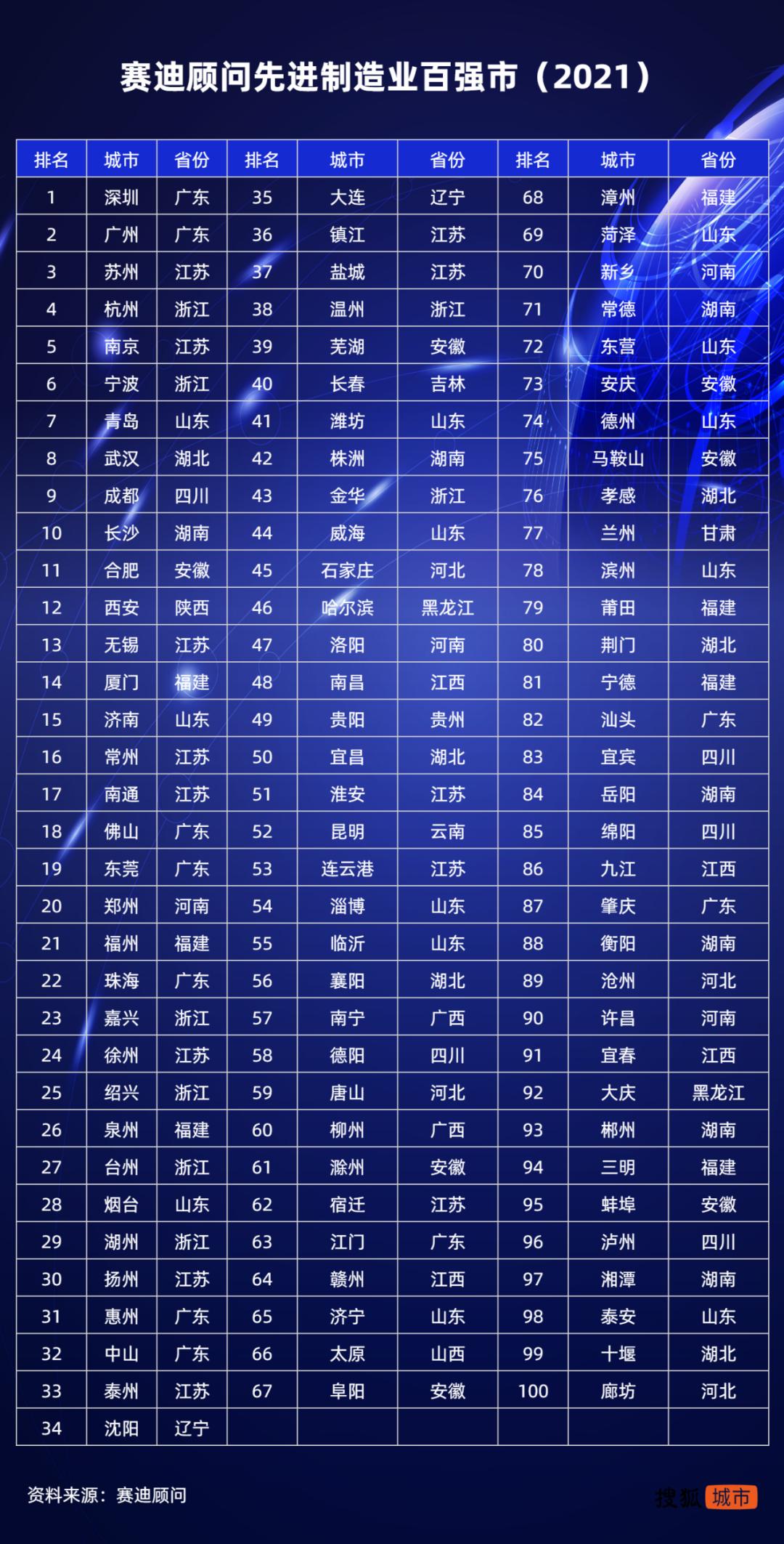 先进制造业百强市排行发布!前10大城市,南方占了9席
