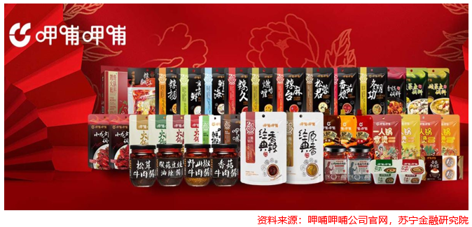 管理的变革之外,呷哺呷哺也进军了调味料市场。2016年10月,公司成立合资企业从事汤底、蘸料调味品的研制及销售。由官网介绍图可以看到,产品主要以火锅锅底、牛肉酱、芝麻蘸酱为主。同时呷哺呷哺还和天猫、京东、苏宁易购和沃尔玛等多家商超合作,积极拓宽线上线下的销售渠道。