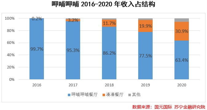 从呷哺呷哺的收入占比来看,近几年的品牌升级策略效果逐渐显现。中高级端品牌“凑凑”的收入占比迅速提升,自2016年以来,凑凑占母公司的收入占比年均增速高达50%。即使受到疫情的影响以及公司管理层人员的巨幅震动,呷哺呷哺仍计划继续在华东、华南地区布局凑凑火锅店,这也表明公司对中高端火锅店的发展仍然持续看好。