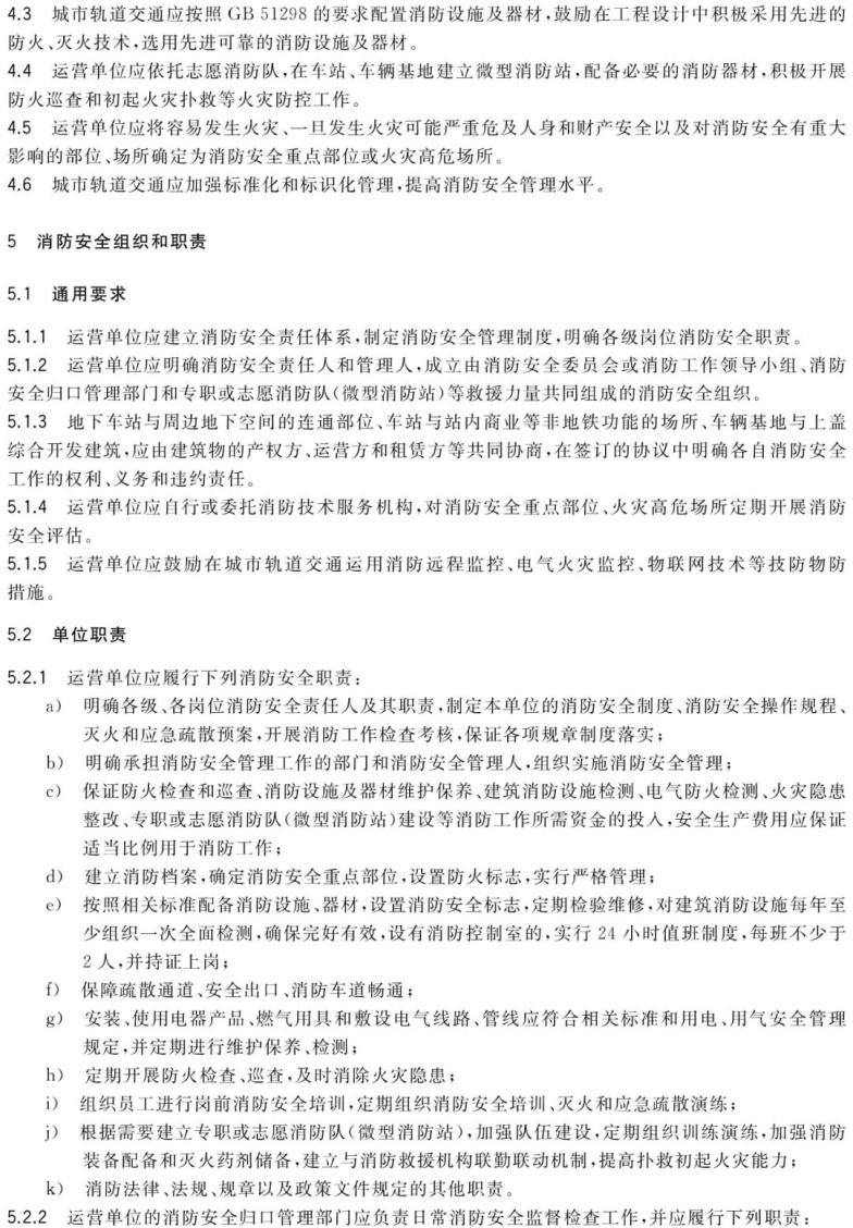 《城市轨道交通消防安全管理》GA/T579-2005规定:城市轨道交通运营单位为消防安全重点单位,应建立消防安全责任体系,明确逐级岗位消防安全职责。城市轨道交通消防设计应有保障消防安全疏散的设施及通道,运营单位应保障消防安全疏散通道及设施完好、可用,落实消防安全措施。城市轨道交通运营单位应建立与当地公安消防机构联系制度,及时反映单位消防安全管理工作情况。