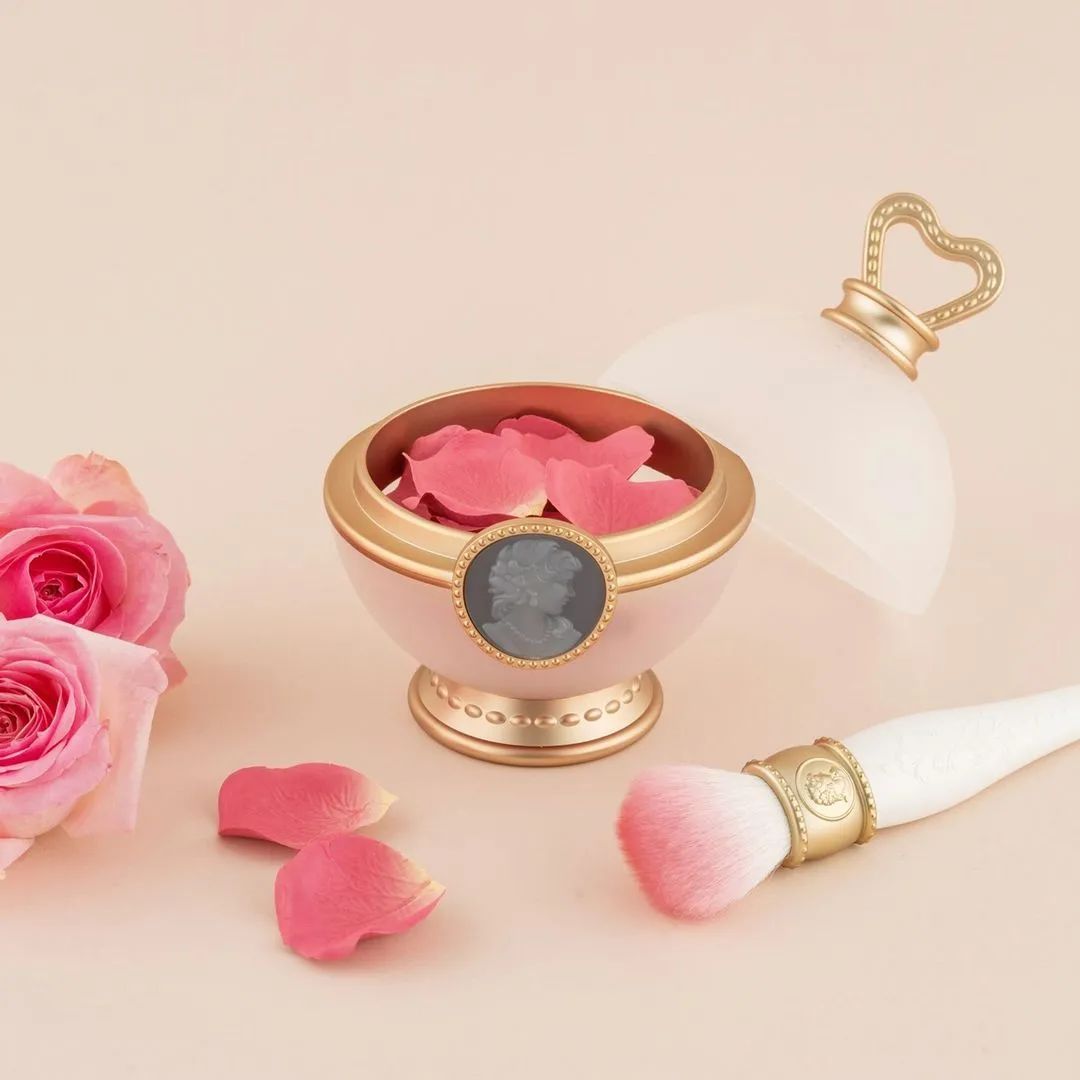 在此之前,多数人对腮红的印象还是一块规规矩矩的饼状。花瓣腮红一出,造型如新鲜欲滴的花瓣般生动柔嫩,连细微的脉络和渐变都做得栩栩如生,被妥帖安放在华丽宫廷风的小盅内,用的时候拿腮红刷蘸一点扫在双颊。