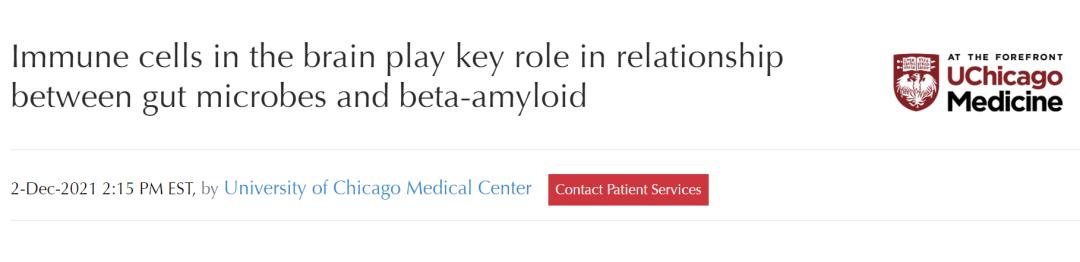 大脑中免疫细胞在肠道微生物和β-淀粉样蛋白之间起关键作用
