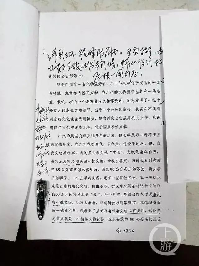 2002年12月,时任公安部副部长白景福在举报信上批示,要求一网打尽洛阳宋氏兄弟文物大案。图源/上游新闻
