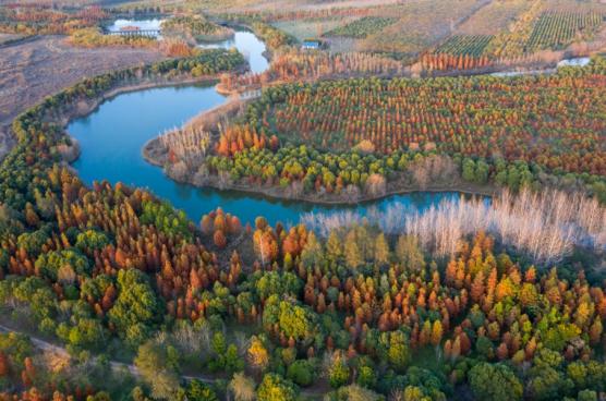青西郊野公园以大莲湖湿地为中心,在保留原住民居住场所之余,将偌大的公园划分为水乡农田示范区、生态保育功能区以及渔村休闲体验区三个区域,其中尤以生态保育功能区的“水上森林”最为出名,到了深秋初冬时节,这里叶红似火,蔚为壮观。
