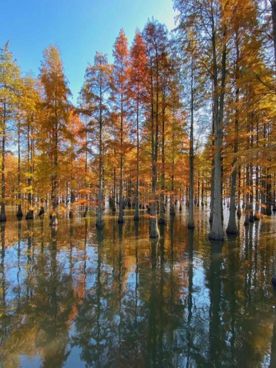 市文化旅游局表示,12月正值水杉的最佳观赏期,西沙湿地公园、东平国家森林公园、青西郊野公园等多家公园的杉树进入最美状态。深黄、橙红、赭红……缤纷而浓烈的色彩,让人心里一派火热。大家一起来看看这些绝美景色吧!