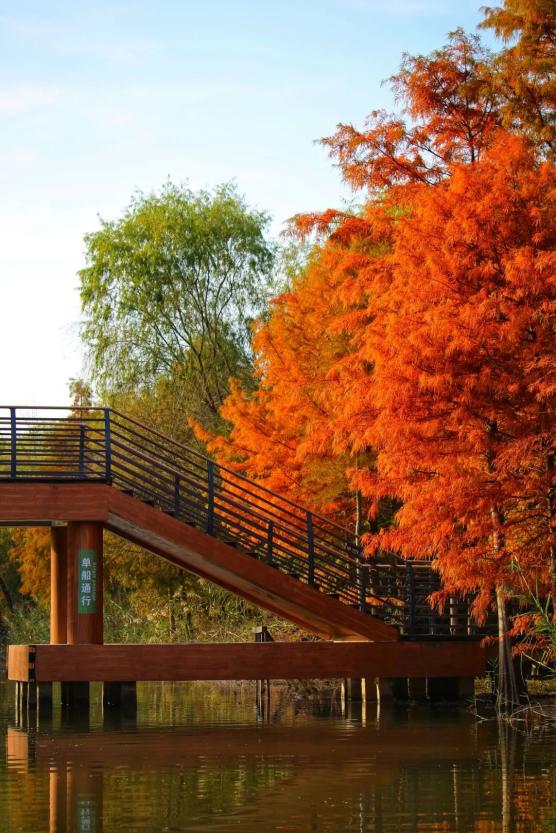 崇明各处水杉或许是崇明岛上最常见的树,大抵只要是崇明岛上的景观,便少不了水杉树的点缀。所以整个崇明就如同一座大公园,行驶在崇明的北沿公路或者乡野之处,这一抹抹火红的颜色总能闯入你的眼帘,赏心悦目。
