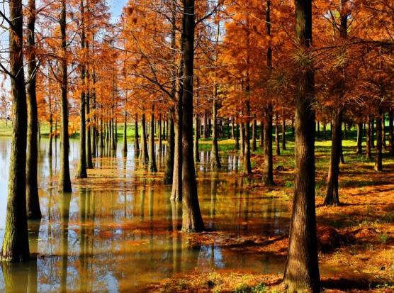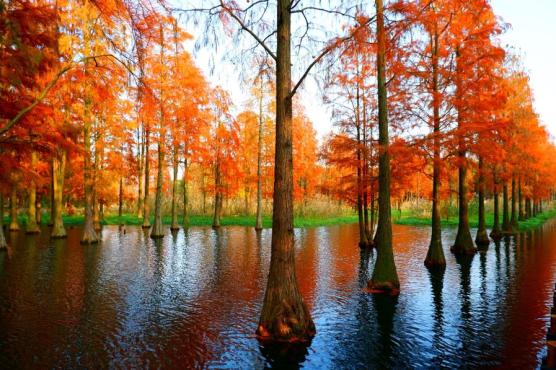 西沙湿地公园想赏水森林吗?来西沙湿地公园就对了,这里的水森林主要为人工种植的旱柳、落羽杉、池杉、中山杉、重阳木等。其中,颜色最艳的要属落羽杉,似羽毛状的叶丛极为秀丽,入冬后叶子渐渐变为深红色,在湖水的倒影下更是楚楚动人。