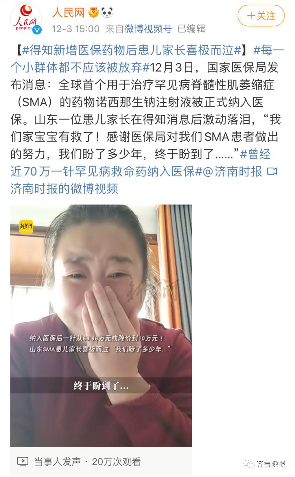 第一针55万!这支只有5毫升的药,是这群患儿的“救命药”山东一位患儿家长今天在得知消息后