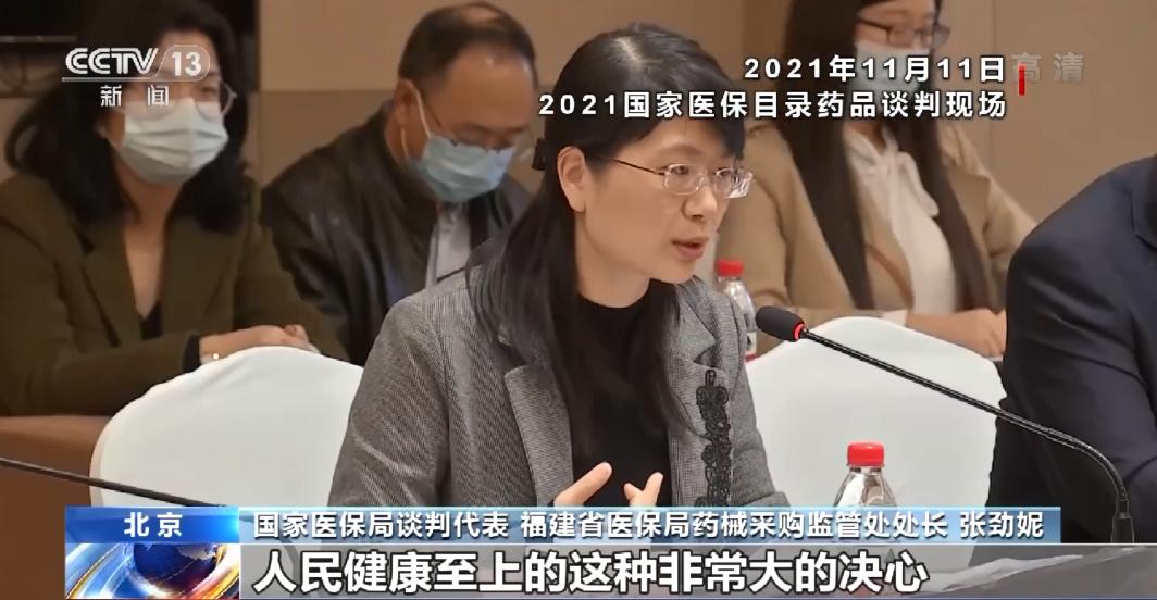 国家医保局谈判代表 张劲妮:“中国医保基金今年实际上是非常困难的年份,包括新冠肺炎的前期,医保基金的减征缓征……所以我们对国家医保局今年仍然有勇气来开展我们的医保谈判工作,确实是也体会到了,人民健康至上的这种非常大的决心……”