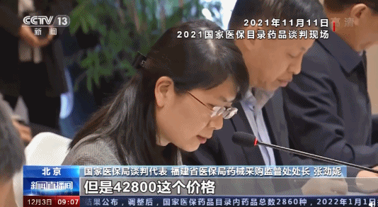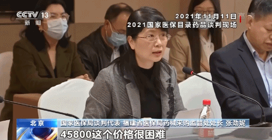 国家医保局谈判代表 张劲妮:“45800这个价格很困难,希望企业再努力”。