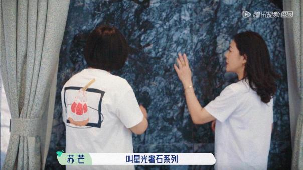 这还真不是恭维,先前张翰的那面墙像水墨画,苏芒这边的像浩瀚星空。苏芒给李雪琴介绍东鹏瓷砖这个款,李雪琴反过来夸苏芒好品位。