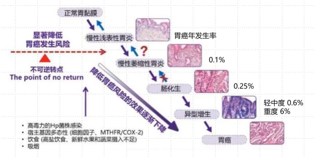 幽门螺杆菌(即HP)是一种寄生在胃内的细菌,目前我国的感染率约60%。所谓病从口入,幽门螺杆菌大多在儿童的时候从口中咽下,定植在胃的幽门部的胃粘膜表面,慢慢地从胃窦开始往胃体方向破坏我们的胃粘膜,从而引起胃炎、萎缩、肠化乃至消化性溃疡、胃癌、MALT淋巴瘤等一系列的疾病。