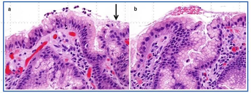 内镜检查时通过活检钳取胃粘膜组织一块,行病理检查,如有慢性活动性炎症(++至+++)则提示HP现症感染;同时活检也能判断胃的萎缩、肠化程度,有无异型增生、癌前病变等情况。