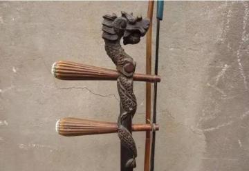 安坐琴头闻五音这个装饰一直沿用下来,一些贵重的胡琴头部至今仍刻有龙头的形象,称其为“龙头胡琴”。