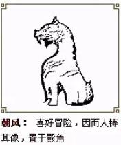 狴犴,又名宪章,形似虎,是老七。它平生好讼,却又有威力,狱门上部那虎头形的装饰便是其遗像。