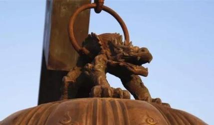 声吼鸣叫响四方原来蒲牢居住在海边,虽为龙子,却一向害怕庞然大物的鲸鱼。当鲸鱼一发起攻击,它就吓得大声吼叫。人们根据其“性好鸣”的特点,“凡钟欲令声大音”,即把蒲牢铸为钟纽,而把敲钟的木杵作成鲸鱼形状。敲钟时,让鲸鱼一下又一下撞击蒲牢,使之“响入云霄”且“专声独远”。