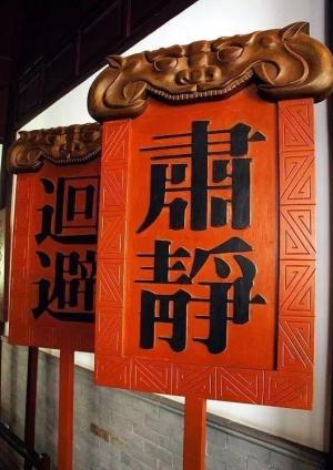 明镜高悬分黑白传说狴犴不仅急公好义,仗义执言,而且能明辨是非,秉公而断,再加上它的形象威风凛凛,囚此除装饰在狱门上外,还匐伏在官衙的大堂两侧。每当衙门长官坐堂,行政长官衔牌和肃静回避牌的上端,便有它的形象,它虎视眈眈,环视察看,维护公堂的肃穆正气。