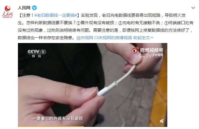 近日,官方再发视频,提醒:老旧数据线一定要换!