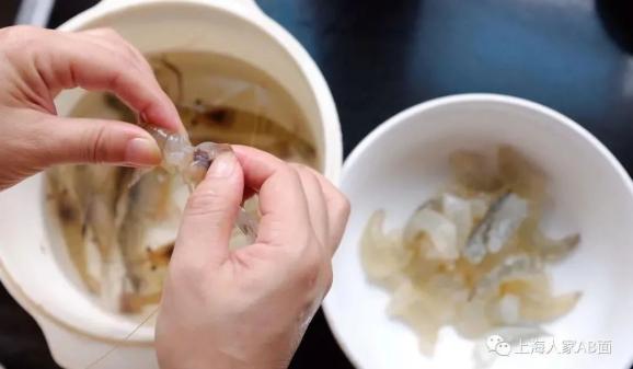 过去,虾仁都是自家剥的,无处买。我跟外公学过,与其说是剥,不如说是挤。先把虾头掐掉,拇指食指捏住虾尾往上一挤,虾仁出壳。
