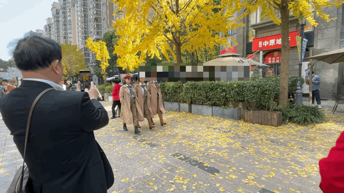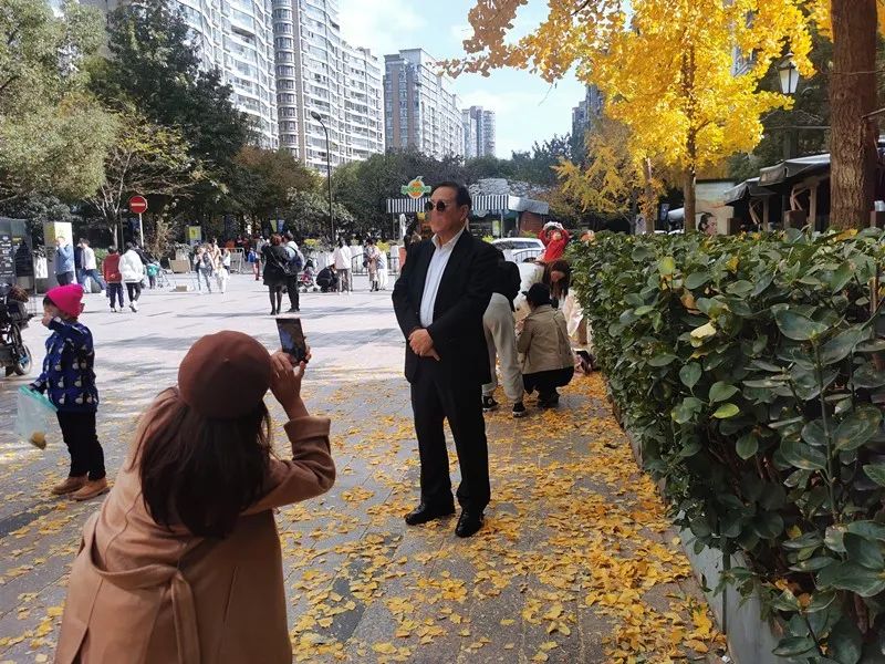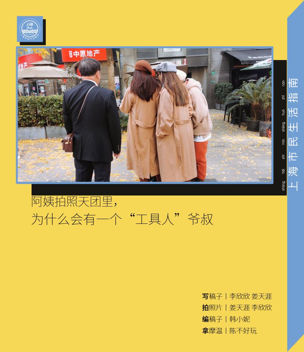 这个11月,我们在新晋网红前滩太古里、银杏季火热的黄金城道、上海音乐厅广场,观察了不下10组、搭讪了5组携带有“工具人”爷叔的拍照天团。