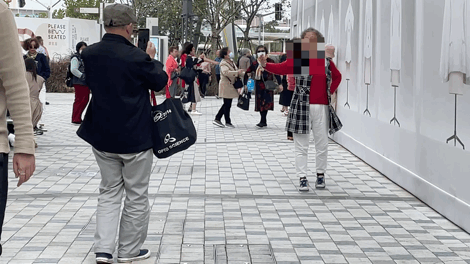 据我们观察,“小姐妹团”和小年轻组团出街的最大区别之一,就是阿姨们喜欢轮流拍同一个背景、同一个角度的照片,根本不介意“同质化”。