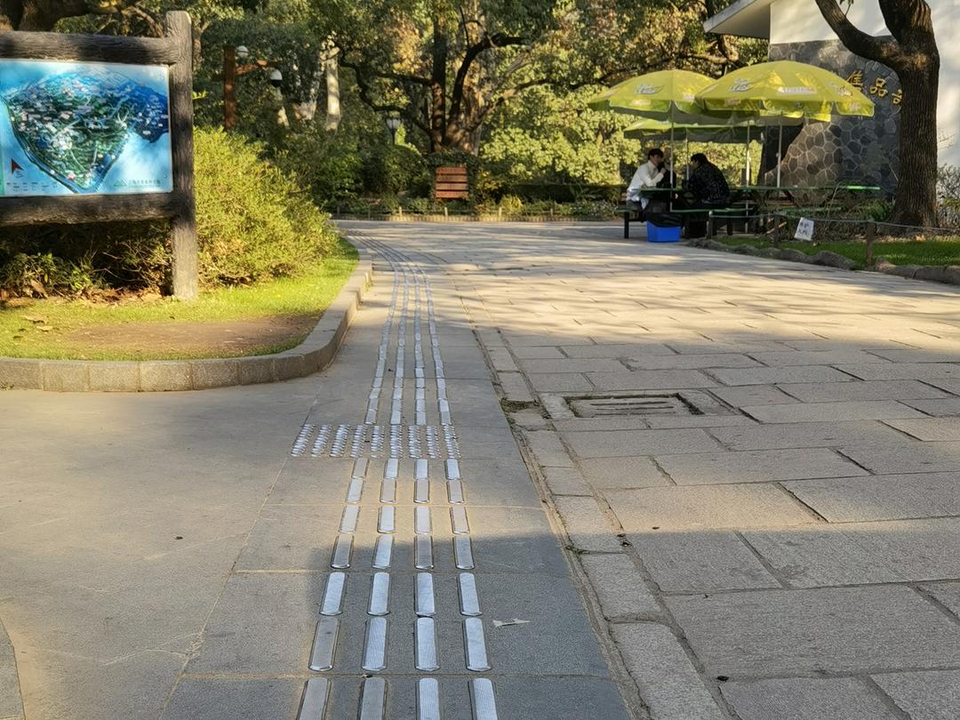 无障碍通道是方便残疾人出行的专用通道。申城很多公厕和公园在有台阶的地方建造了带有扶手的无障碍通道,为出行的残疾人提供便利。