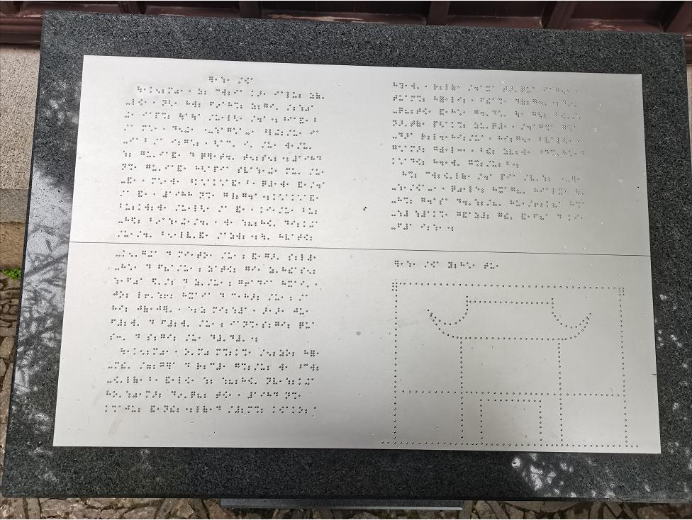 古猗园的单体建筑触觉图设计涵盖了园内的景点说明和建筑立面外形的轮廓触摸简图。这能够帮助有需要的游客了解建筑信息,并同时建立起对该建筑的形象认识。