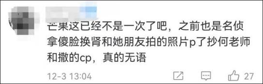 还有人指出,这并不是芒果TV初犯,此前在《明星大侦探》中,节目组就曾擅自使用他人图片,并且随意P图。