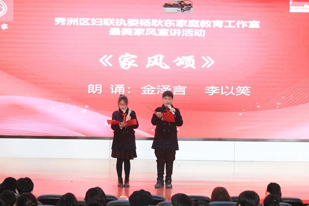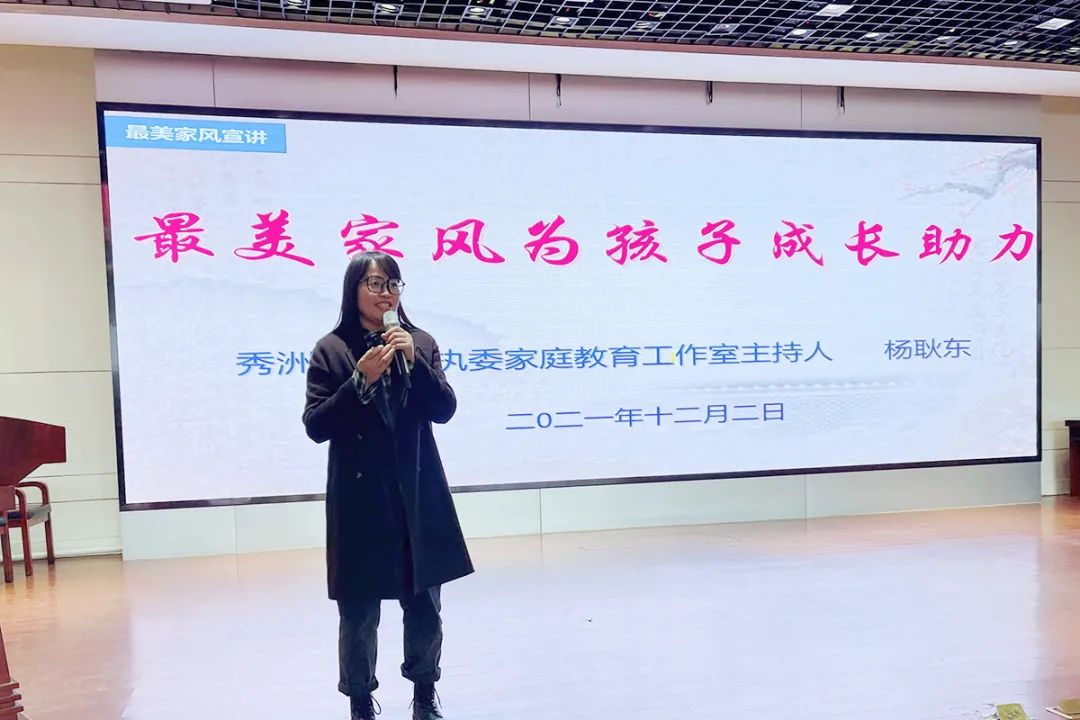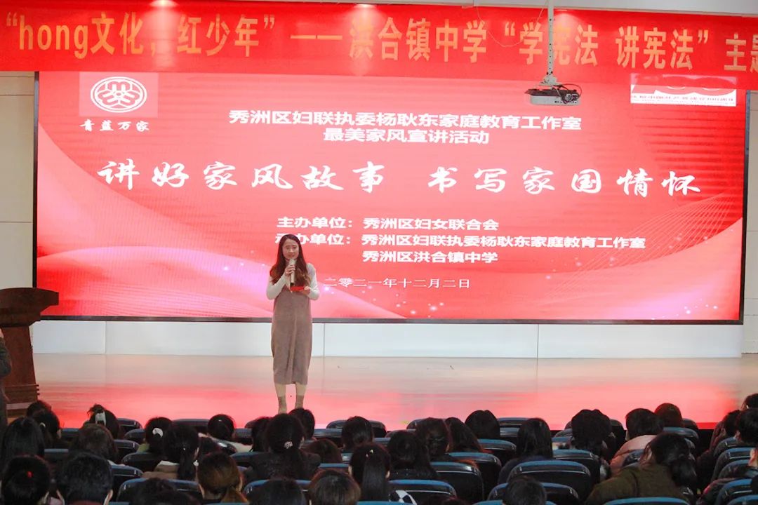 12月2日下午,秀洲区妇联执委杨耿东家庭教育工作室“最美家风宣讲活动”在洪合中学圆满结束。洪合中学七年级近两百位家长和部分老师参与了本次活动。