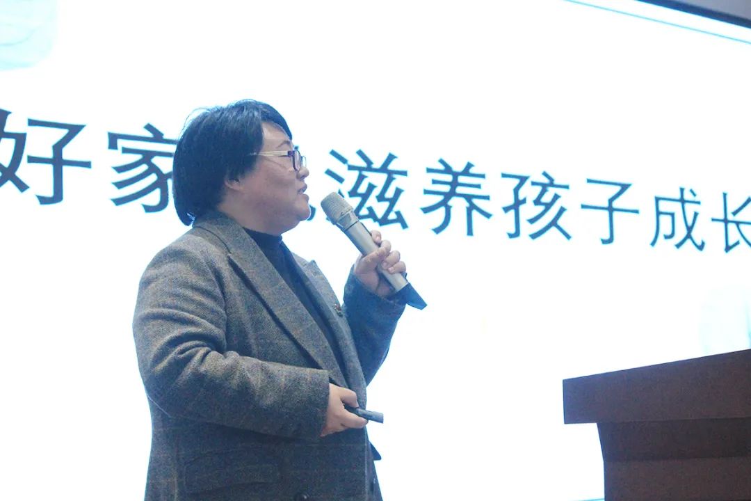 谈家风活动最后,在家庭教育、家校合作方面有着丰富实践经验的秀洲区妇联执委杨耿东家庭教育工作室主持人——杨耿东老师为大家带来了《最美的家风是为孩子成长助力》的宣讲。杨老师从袁隆平爷爷给母亲的一封信入手,娓娓道来如何建设好家风。她认为言传身教最关键,父母是什么样,远比为孩子做什么更重要,建议家长从遵守社会秩序、保持良好品格、养成良好习惯、学会情绪管理、懂得珍爱生命等五个方面来涵养好家风为孩子成长助力。杨老师的家庭教育理念和生动的实例给在座的每一位老师、每一位家长朋友都留下了深刻的印象。